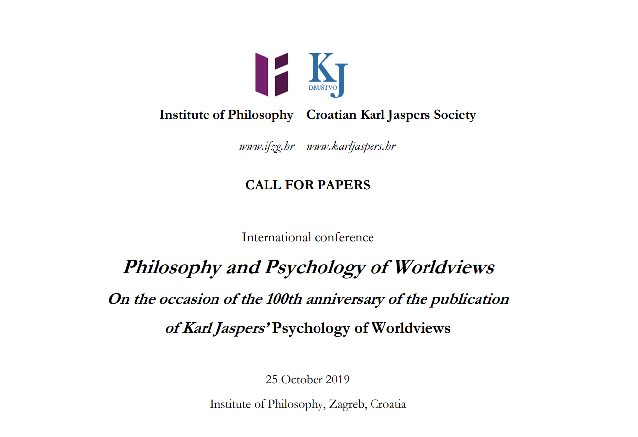 According to Jaspers, the critical attitude toward reality, which shapes and presents itself as an essential task of philosophical reflection, is of a descriptive character – it is placed in the neutrality of analysis and insight, and does not enter the sphere of moral judgment of a certain worldview. Inspired by the same request, in the plurality of thought and content, and in an international and transcultural dialogue, the Institute of Philosophy and the Croatian Karl Jaspers Society are organising an international gathering with a broad range of topics going beyond the usual disciplinary boundaries.